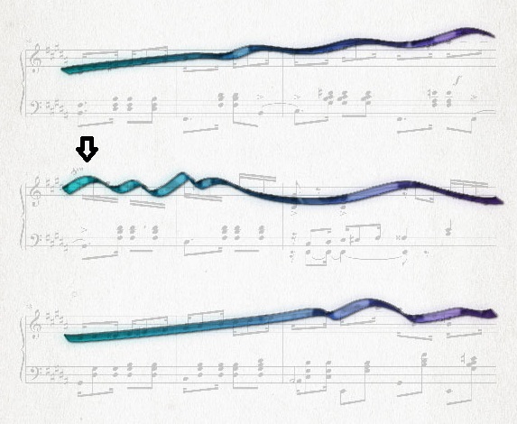 Na verdade, a melodia sobe e desce três vezes (indicado pelas setas), fazendo um caminho sinuoso que está presente em dezenas de suas peças. Vamos chamar este padrão de “o laço de Nazareth”, que pode ser visualizado melhor na ilustração abaixo.