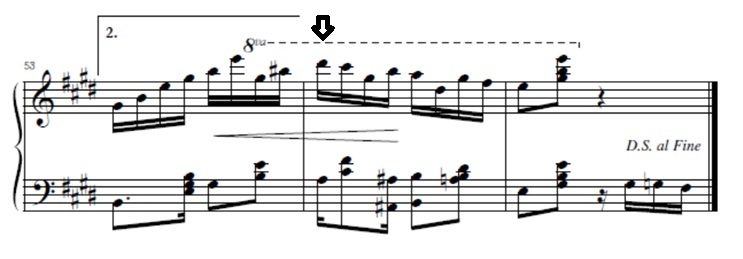 Na terceira parte do Odeon vemos outro típico exemplo do laço, exatamente no trecho em que a letra canta “esse chorinho que hoje em dia ninguém sabe mais” (indicado pela seta abaixo). (clique aqui para ouvir este trecho, na gravação de Nara Leão)