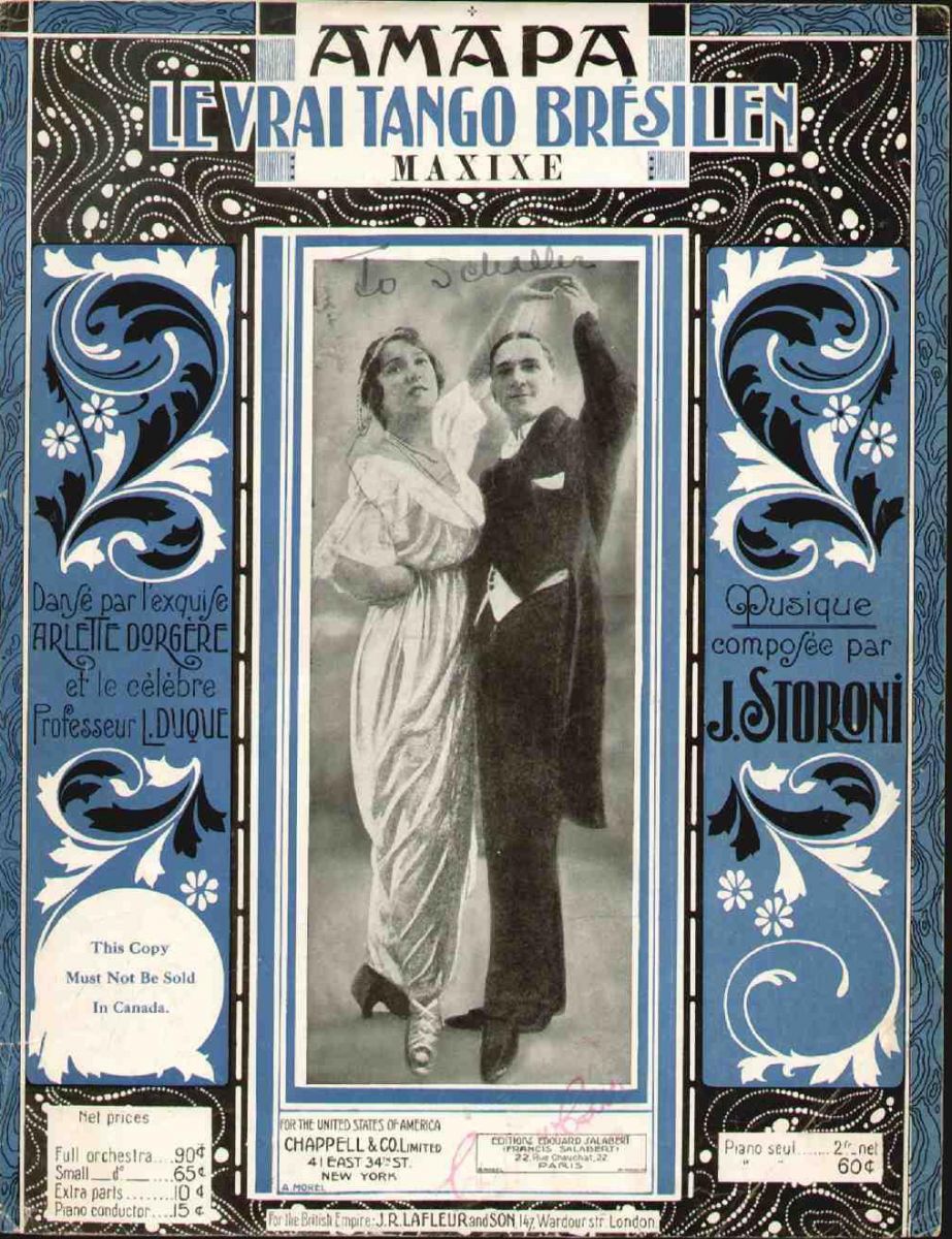 Amapá, de Juca Storoni (pseudônimo anagrama de Costa Júnior), le vrai tango brésilien - maxixe (ed. E. Salabert Paris; ed. J. R. Lafleur & Son., Londres.; Chappell & Co., EUA).
