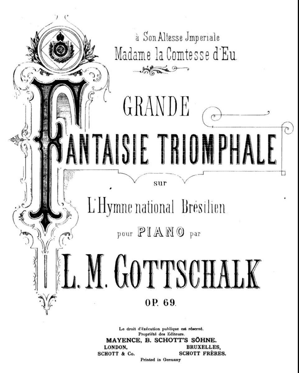 Em 1869 o pianista americano Louis Moreau Gottschalk veio para o Rio de Janeiro fazendo grande sucesso com seus “concertos monstros” executados por duas orquestras e dezenas de pianistas. Além da Marcha Solene Brasileira, compôs a famosa Grande fantasia triunfal sobre o Hino Nacional Brasileiro, publicada em Londres e Bruxelas em 1873 por B. Schott’s Söhne.