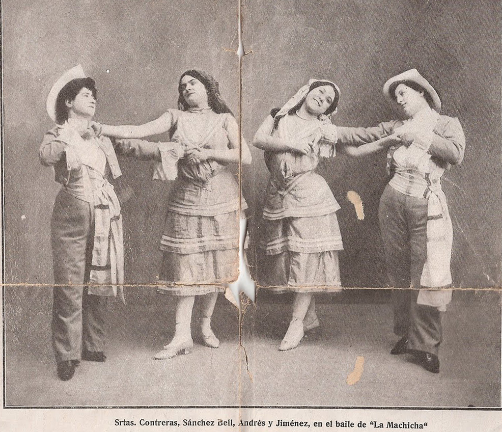 Em 1905, estreou no Teatro Cómico de Madrid a zarzuela La Gatita Blanca, com música de Amadeo Vives e Jerónimo Jiménez, e libreto de José Jackson Veyán e Jacinto Capella. Esta “humorada lírica" em um ato, que fez grande sucesso até o ano seguinte, tinha como quarto número um Baile de la machicha.