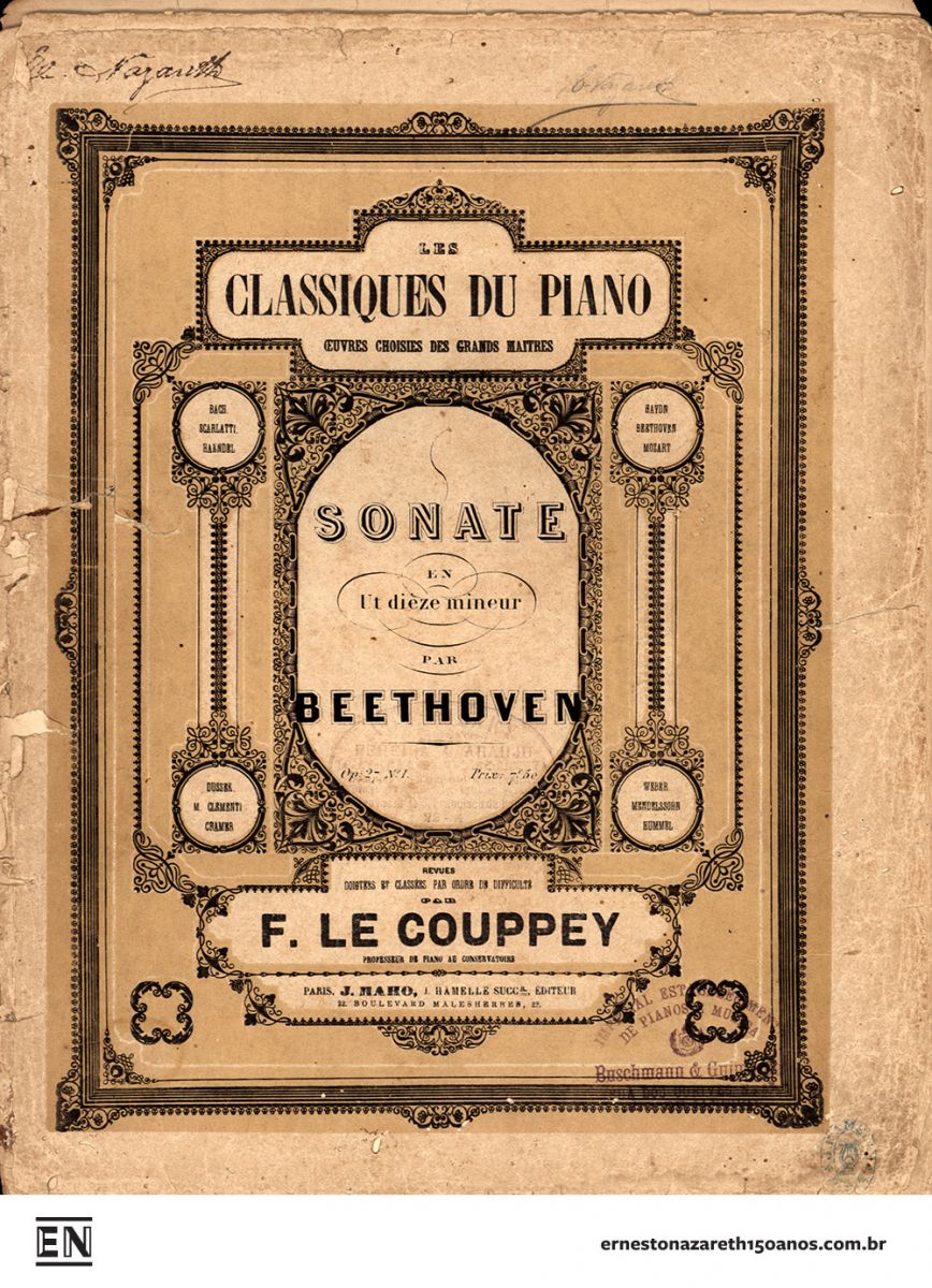 A famosa Sonata ao Luar, de Beethoven, com assinatura do Nazareth na capa (hoje presente no acervo Ernesto Nazareth/IMS)::