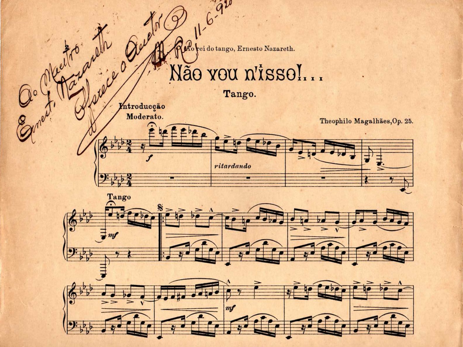 Das músicas em homenagem a Ernesto Nazareth, vemos o tango "Não vou n'isso!...", de Teophilo Magalhães, publicado em 1920, e dedicado "ao rei do tango, Ernesto Nazareth".