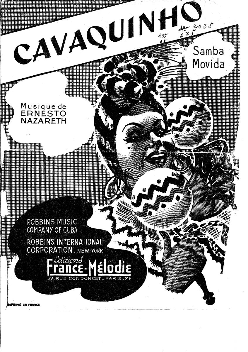 A edição francesa de Apanhei-te Cavaquinho ("Samba movida"), "du film de Walt Disney 'Carnaval' ". Paris, Ed. France-Mélodie (ca. 1947).