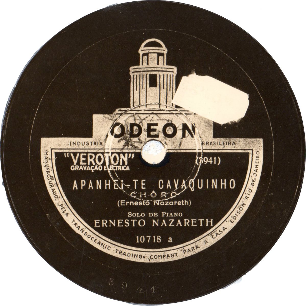 78-RPM Odeon 10.718-a, com a música Apanhei-te cavaquinho, interpretada pelo próprio Ernesto Nazareth, lançado em 1930.