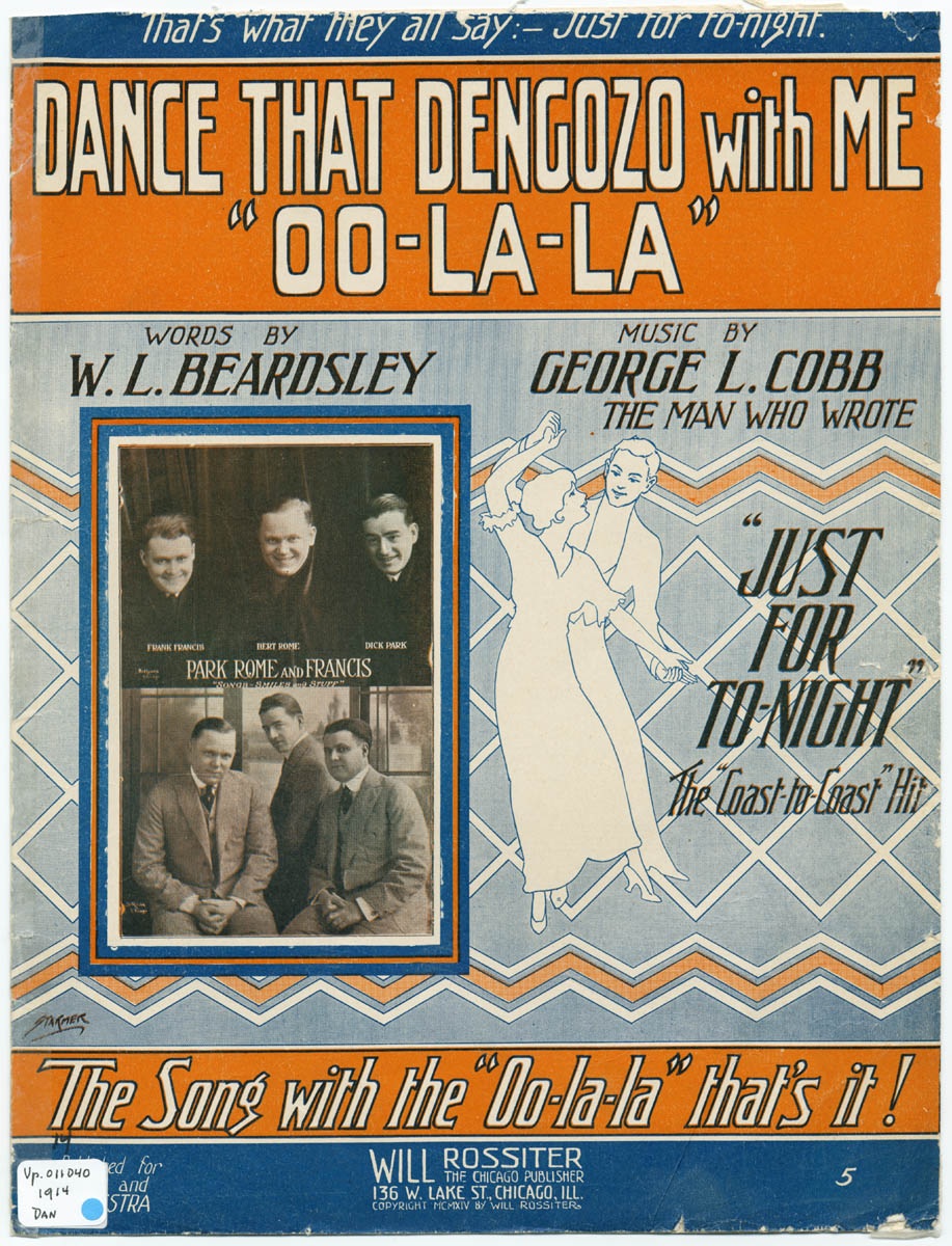 1914. Dance that Dengozo With me ‘Oo-La-La’, de George L. Cobb e W. L. Beardsley. Will Rossiter, Chicago