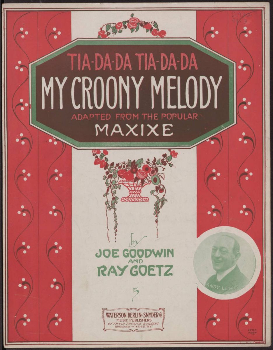 1914. Tia-da-da Tia-da-da My Croony Melody, de E. Ray Goetz e Joe Goodwin; Waterson, Berlin & Snyder, New York