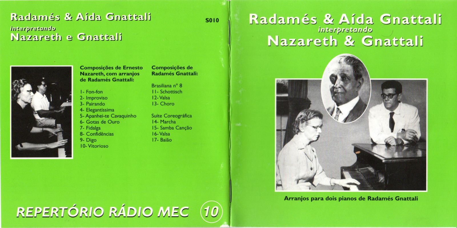 Contracapa e capa do CD "Radamés e Aída Gnattali interpretando Nazareth e Gnattali” (Repertório Rádio MEC S10)