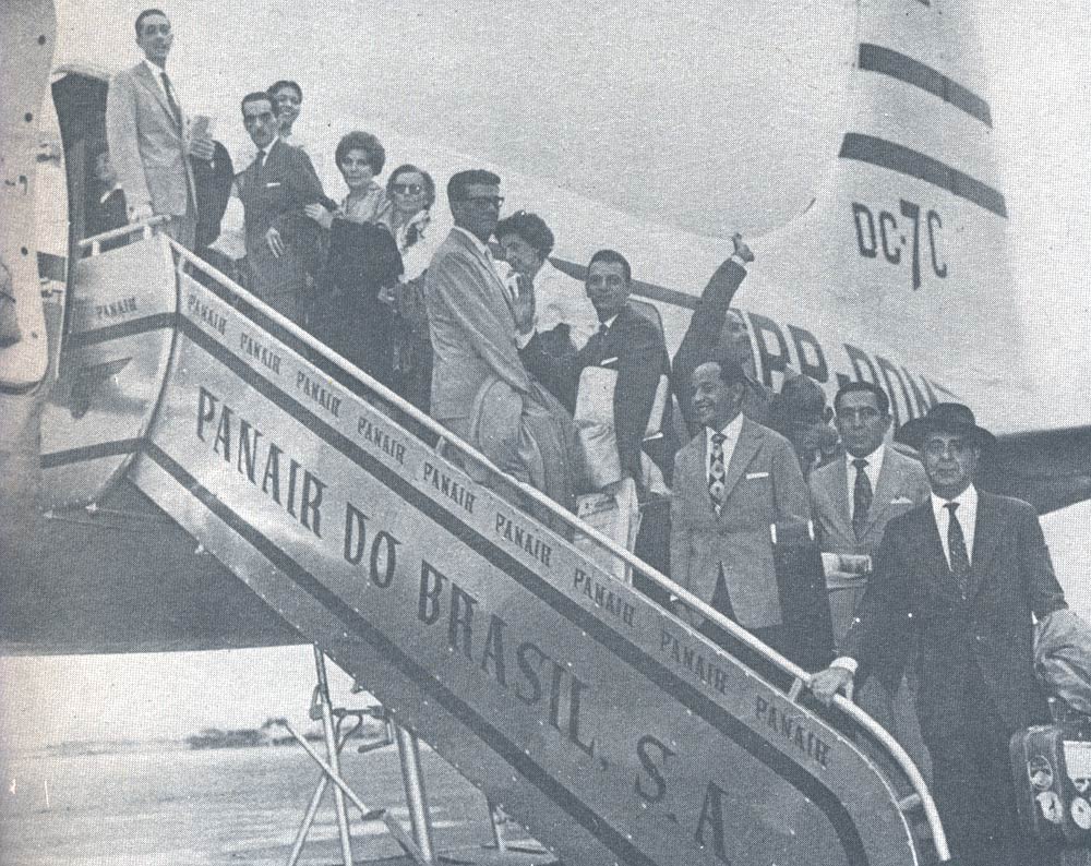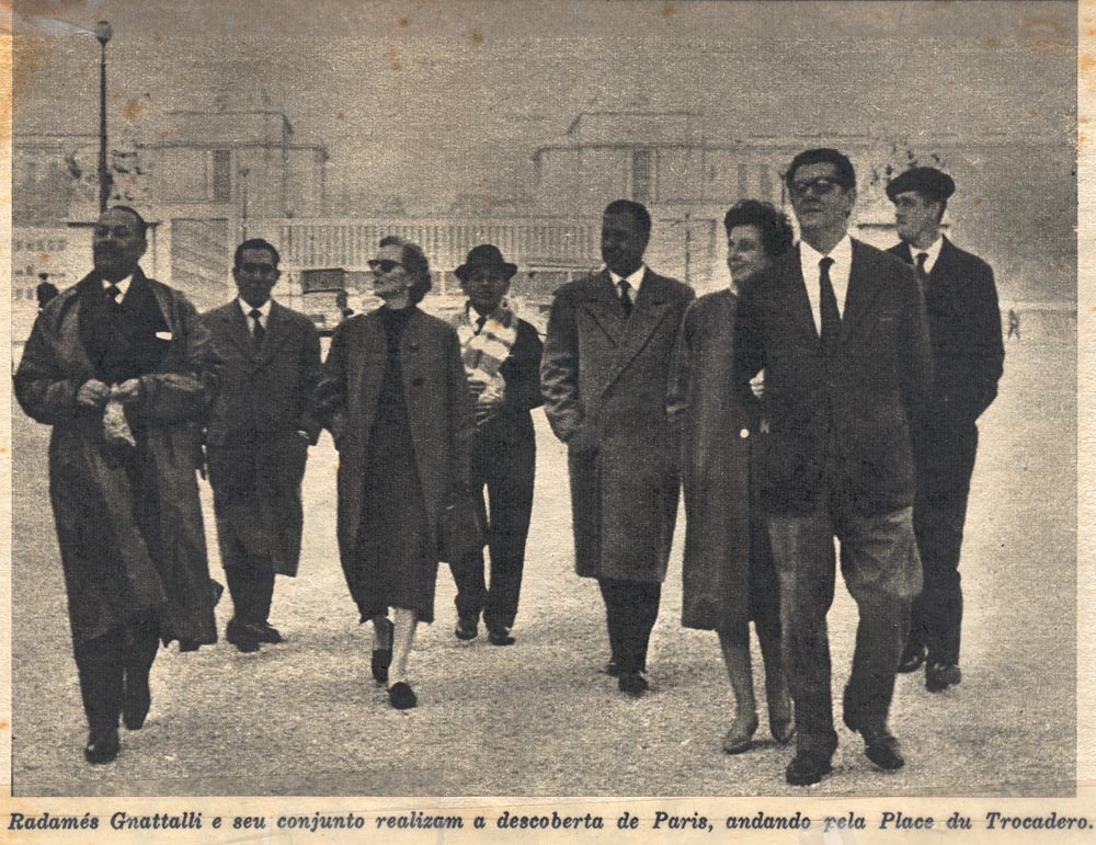 Sexteto Radamés Gnattali embarcando para a Europa, e, à direita, caminhando em Paris (site oficial do compositor)